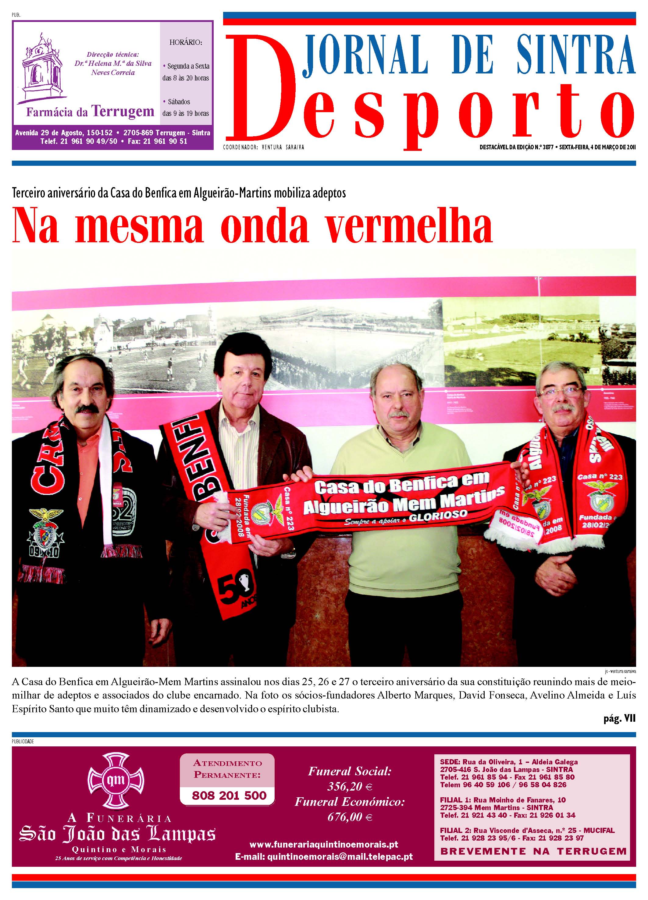 Nesta edição, o destaque de entrada vai para o 3.º aniversário da fundação da Casa do Benfica em Algueirão Mem Martins, enquanto que na tradicional página de entrevista, a escolha recaiu em Maria de Lourdes Soares Santos, presidente do Grupo Sócio Cultural Novos Talentos, colectividade da cidade de Agualva-Cacém, a propósito do Dia Internacional da Mulher que se aproxima.