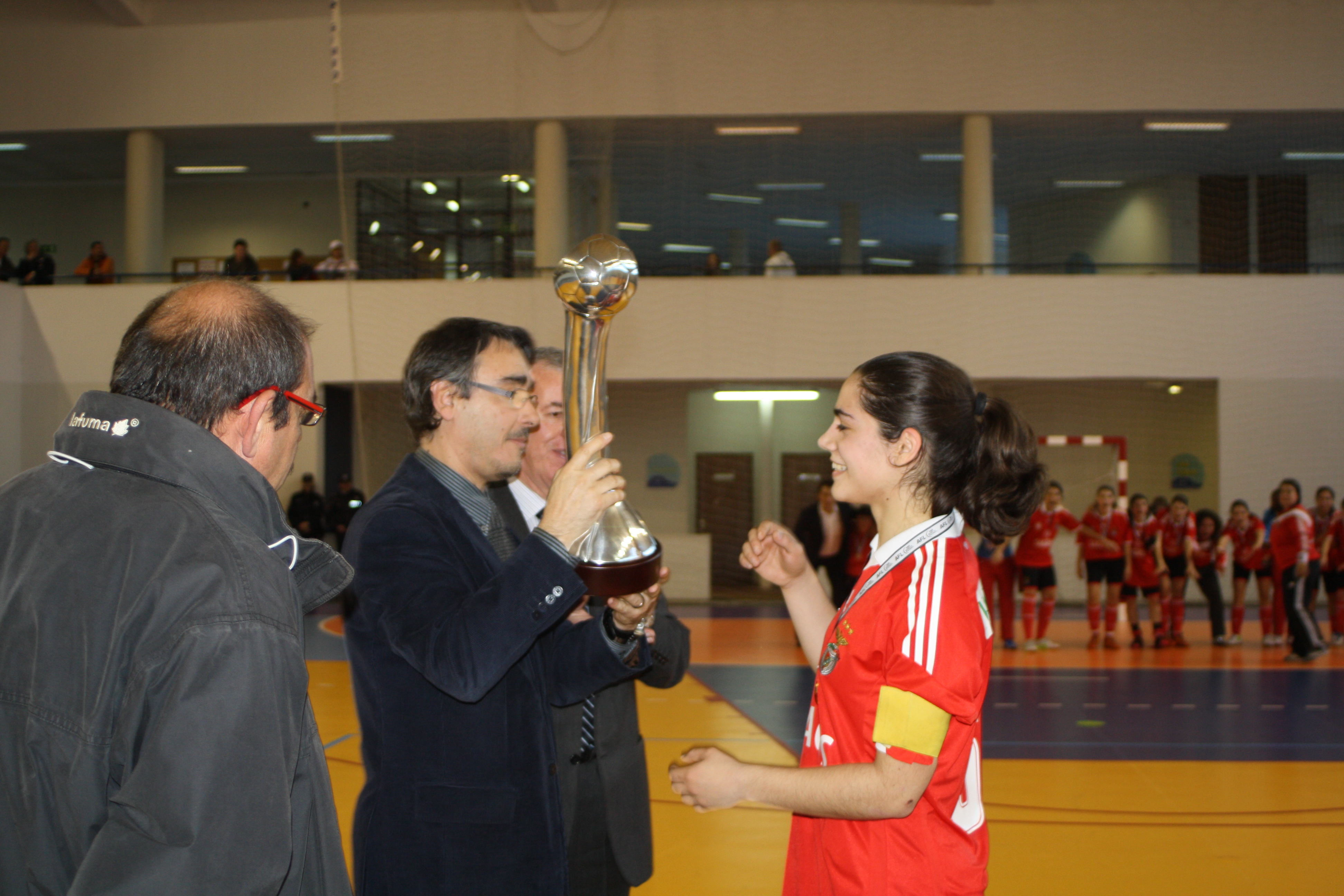 A capitã Inês recebeu o troféu das mãos do presidente da AFL, Carlos Ribeiro, e do vice, António Silva, perante duas centenas e meia de espectadores que animaram o recinto de Monte Abraão.
