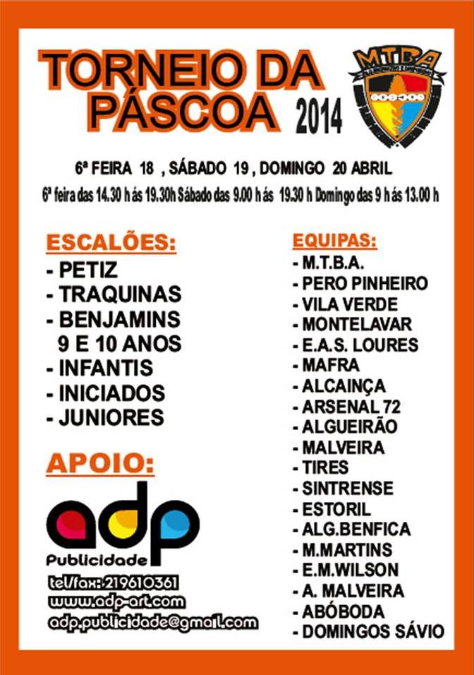 Nos próximos dias 18, 19 e 20 de Abril o o Grupo MTBA, Magoito, Tojeira, Bolembre e Arneiro dos Marinheiros – Freguesia de São João das Lampas, organiza pelo 3º Ano o TORNEIO DA PÁSCOA. Destinado a atletas de vários escalões (petiz, traquinas, benjamins, infantis, iniciados e juniores) este Torneio conta com a participação de cerca de 400 atletas e 19 equipas.