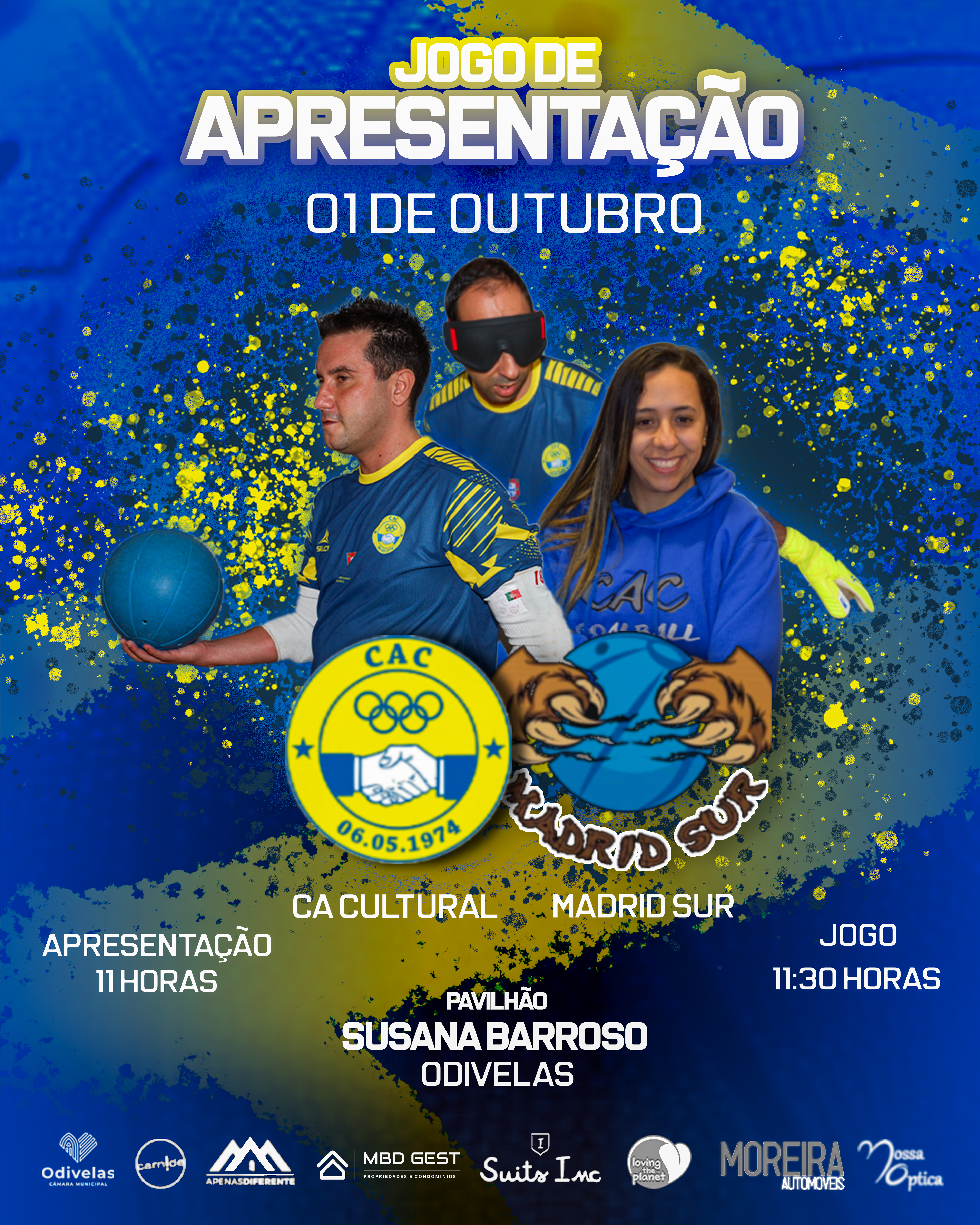 Actual campeão nacional, o Clube Atlético e Cultural (CAC) vai apresentar a equipa de Goalball para a época 2023-24. Será no dia 1 de Outubro no pavilhão Susana Barroso, em Odivelas.