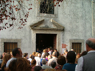 O tempo cinzento e o piso inclinado que levam à capela não afastaram as inúmeras pessoas que, muito antes da missa começar, já se encontravam no local e nos arredores, por onde passaria mais tarde a procissão com a tão esperada imagem da padroeira. A missa começou e a pequena capela, com sinais visíveis de degradação, encheu-se de fiéis que transbordaram para as imediações. Já há algum tempo que assim tem sido, pelo que foram instaladas colunas nas janelas do edifício, para que toda a gente pudesse ouvir a celebração.