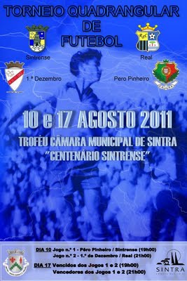 Joga-se esta 4.ª feira, dia 10, no relvado principal do campo de jogos da Portela, a 1.ª ronda da “Taça de Sintra” prova integrada no programa das comemorações do Centenário do Sport União Sintrense, e promovida pela Câmara Municipal de Sintra. Pelas 19h00 horas defrontam-se 1.º Pinheiro e Sintrense, e pas 21h00, 1.º de Dezembro e Real Sport Clube.