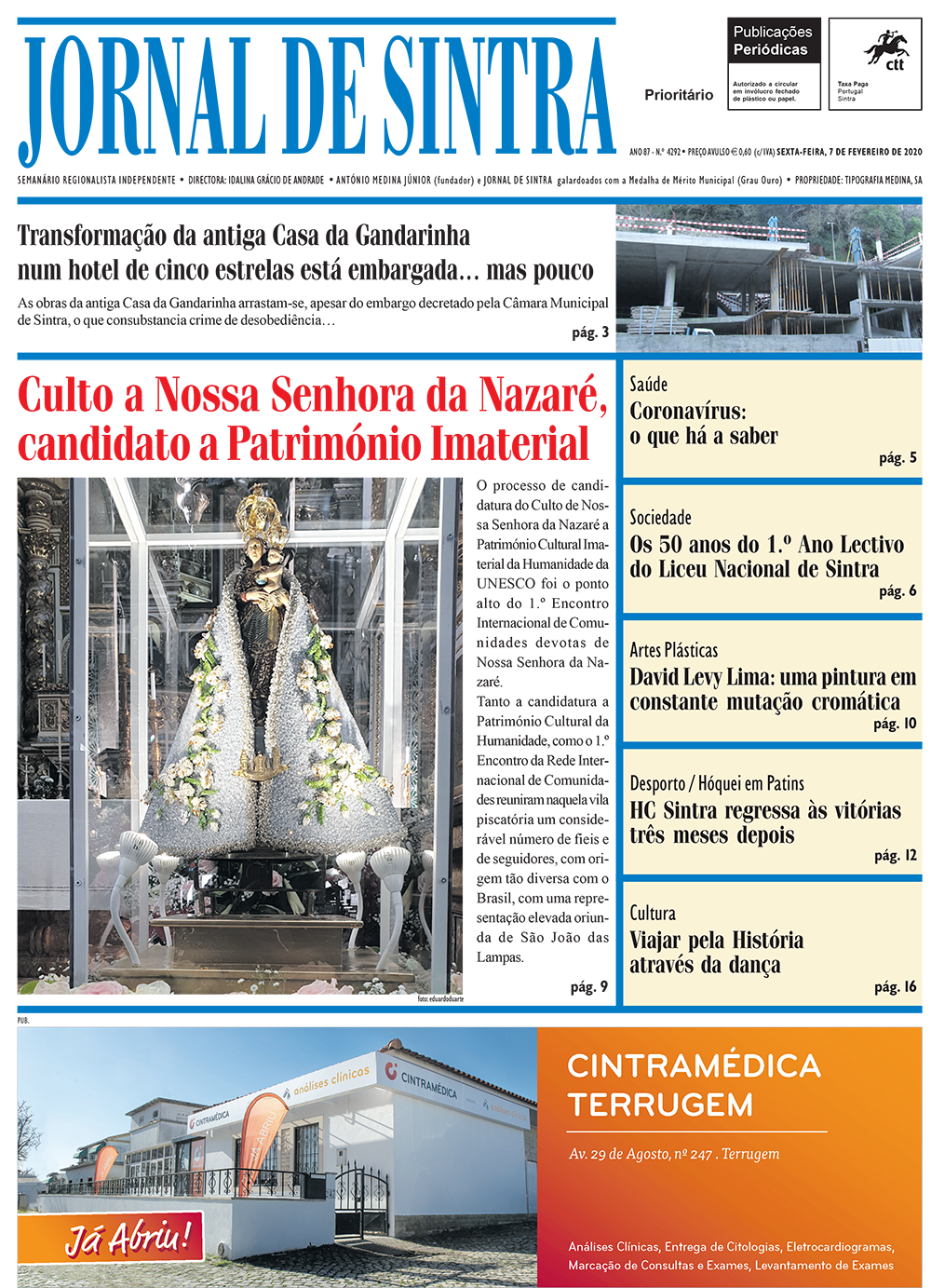 “Culto a Nossa Senhora da Nazaré, candidato a Património Imaterial” é a manchete da edição digital de 07 de Fevereiro de 2020.
